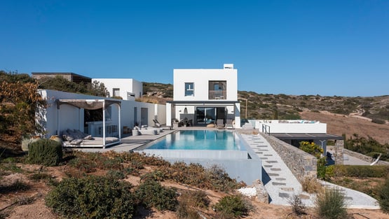 Villanovo propose 5 villas sur la destination Naoussa avec des prix allant de 850 € à 3500 € la nuit. Ces tarifs incluent les conseils de voyage, l'accompagnement tout au long du séjour et d'autres options incluses avec la location de la villa.